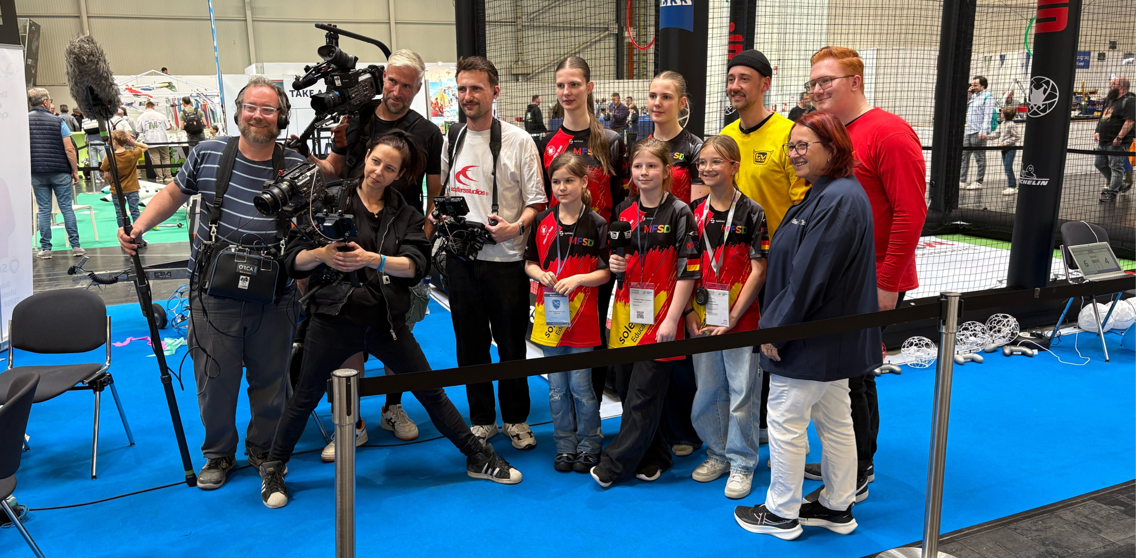 Am Freitag hatten wir Besuch von ProSieben. Ein Team des Formats „TV total“ filmte an unserem Stand. Die Protagonisten der Sendung, Martin und Sven, flogen bei großer Zuschauerkulisse vor laufenden Kameras gegeneinander. Eine gute Werbung für uns und den Drone-Soccer-Sport.
