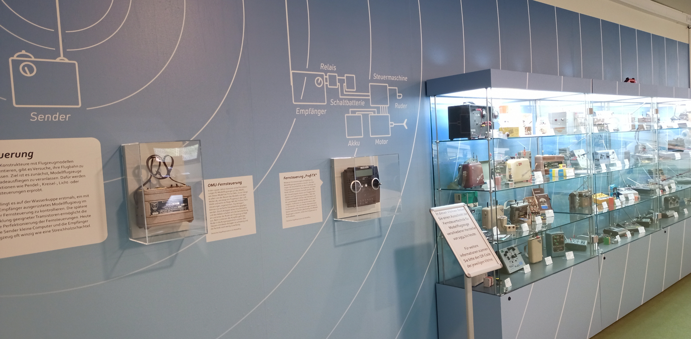 Die Vitrinen mit den Fernsteueranlagen wurden im Rahmen der Neugestaltung des Museums vollständig überarbeitet. Erstmals wird die Entwicklung der Fernsteuertechnik ab 1956 bis heute in dieser Ausstellung gezeigt. Dabei ist die Sammlung nun chronologisch aufgebaut und zeigt verschiedene Exponate der verschiedenen Hersteller.